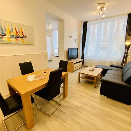 The 35 m^2 accommodation is located only 450 metres from the beachside 19th-century Warnemunde lighthouse. Tourists can find Shipbuilding and Maritime Museum Rostock 10 minutes' drive from the apartment.
